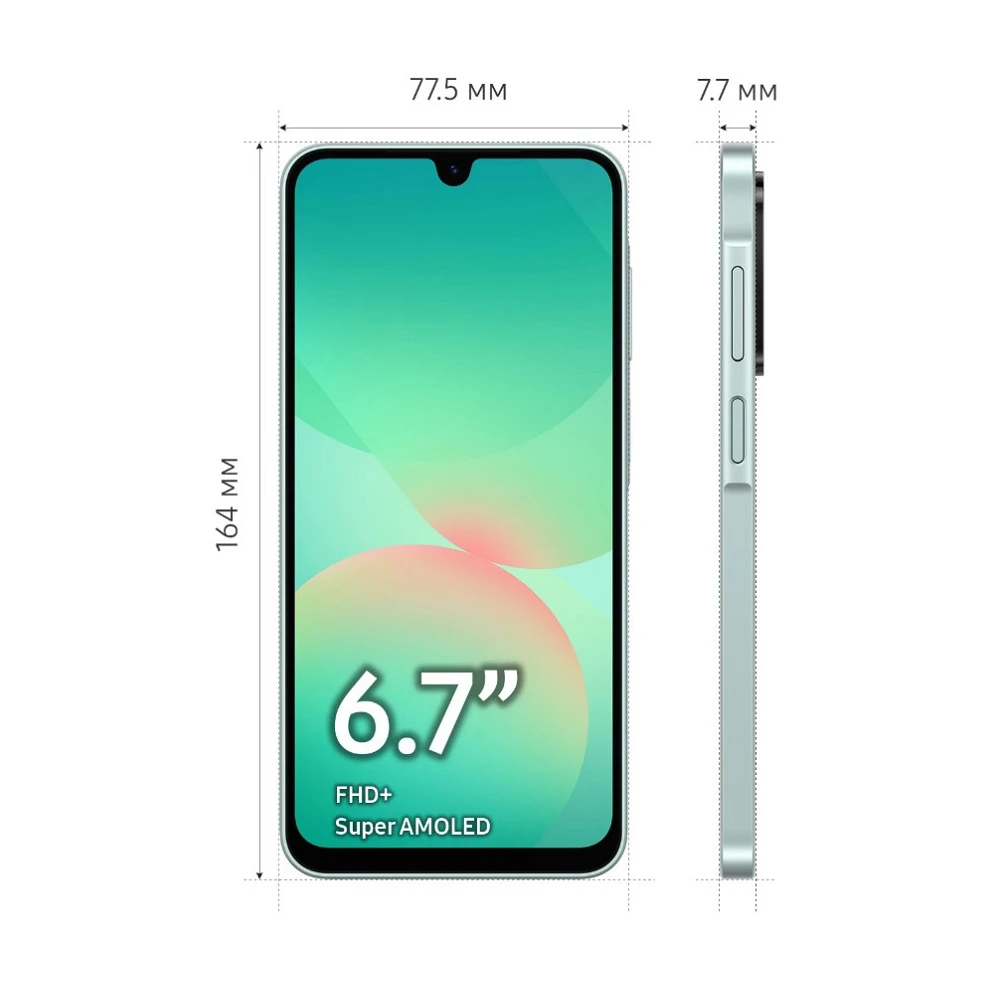 Смартфона Samsung Galaxy A26 5G 6/128GB Mint — современный 5G-смартфон с отличным сочетанием производительности, дизайна и функциональности. Этот телефон создан для тех, кто ценит яркий дисплей, уверенную работу в сети следующего поколения и долгую автономность при умеренной цене.