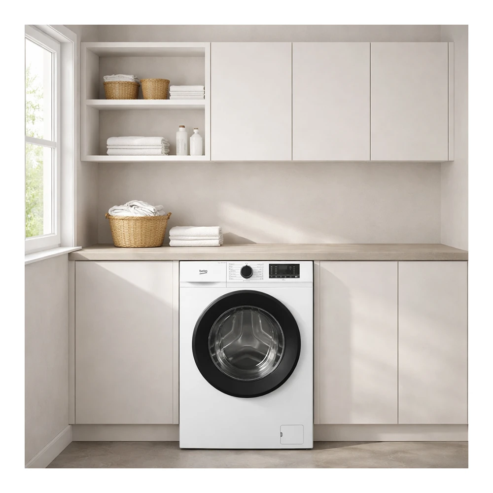 Стиральная машина Beko B1WFK2604WBEE — удобный выбор для квартиры и семьи из 1–3 человек: загрузка до 6 кг, фронтальная дверца и компактная глубина 45 см при стандартной ширине 60 см.