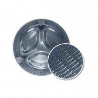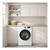 Машина отдельностоящая, выполнена в классическом белом цвете; бак из пластика снижает вес и устойчив к коррозии. Вес устройства 53 кг облегчает установку и позволяет аккуратно вписать технику в нишу или гардеробную.