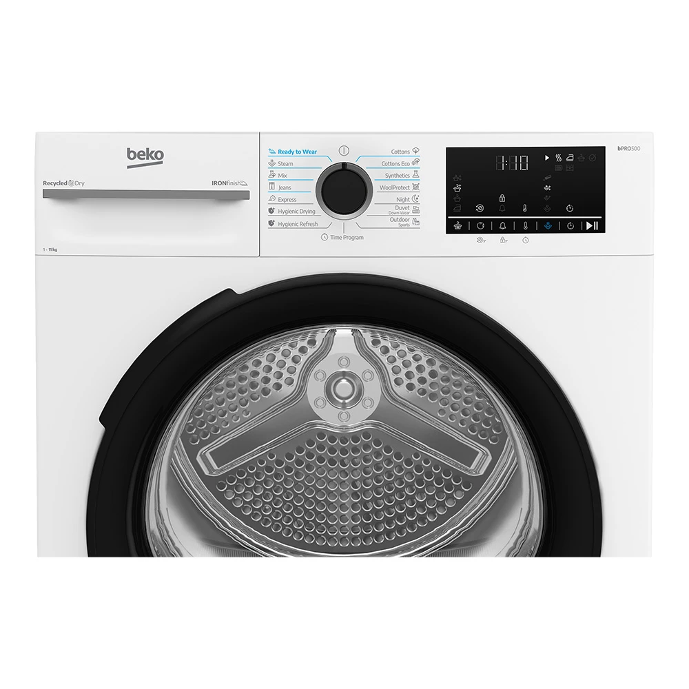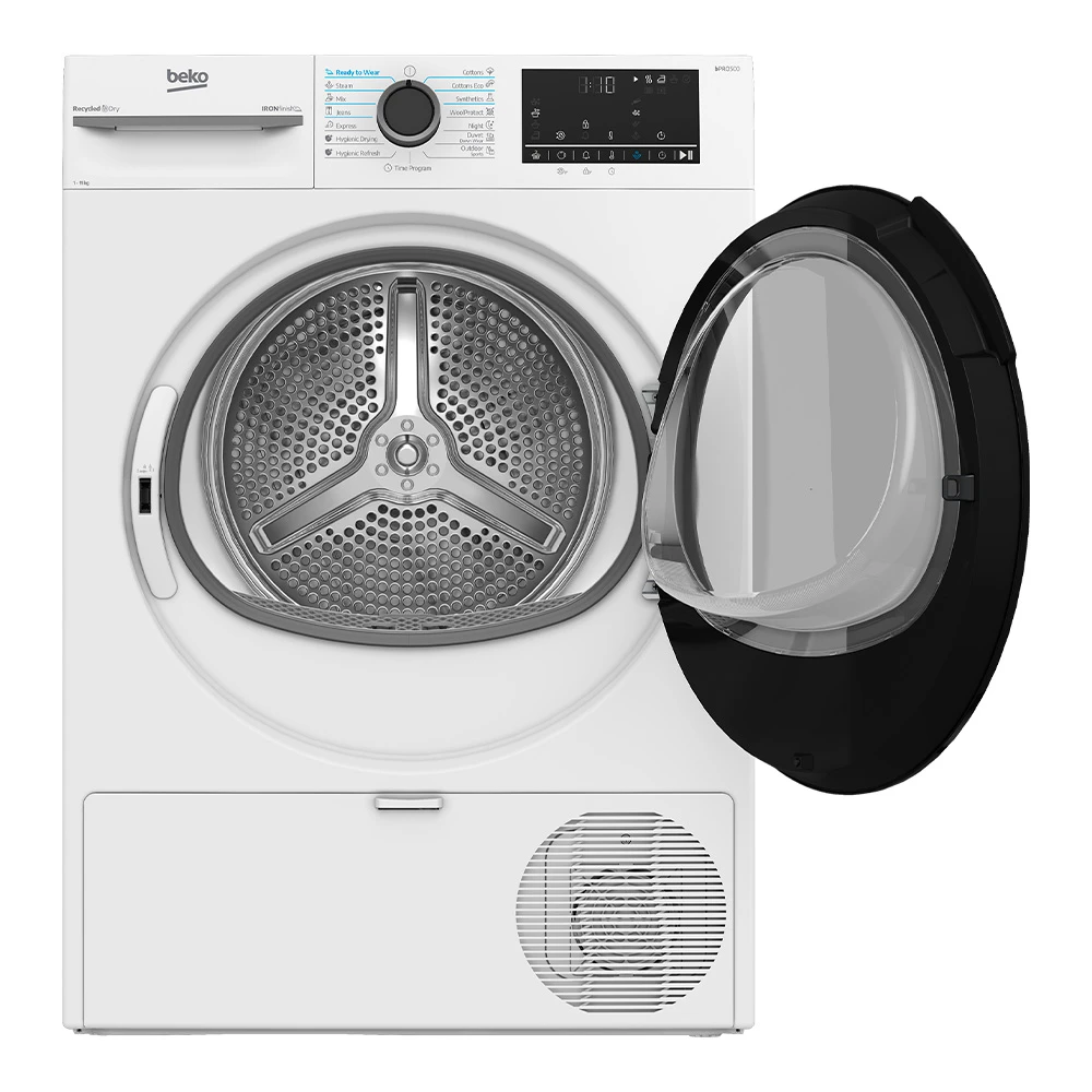 Сушильная машина Beko BM3T41233WB — практичное решение для семей, которые хотят получать сухие вещи без развешивания и лишней влажности в квартире. Модель отдельностоящая, с фронтальной загрузкой и вместимостью до 11 кг, поэтому подходит и для больших стирок, и для ежедневных комплектов одежды.