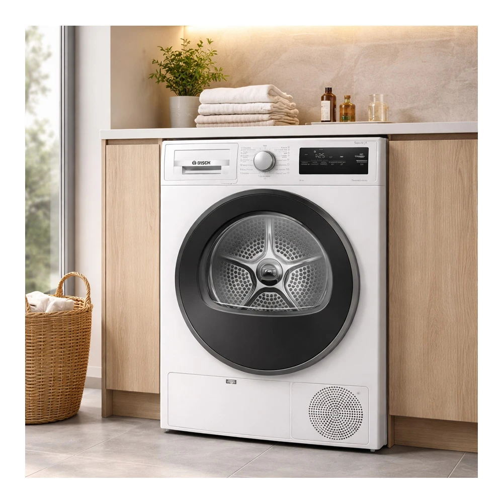 Сушильная машина Bosch WTH85206UA на 8 кг — практичное решение для квартиры или дома, когда нужно быстро и бережно высушить бельё без верёвок и батарей. Класс энергоэффективности A++ помогает экономить электроэнергию, а белый корпус легко вписывается в современный интерьер. Она выручает, когда в квартире повышенная влажность или нет места для раскладных сушилок.