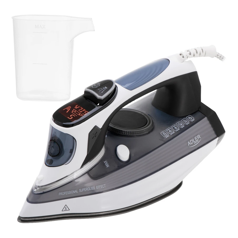 Сильная сторона Adler AD5053 — сочетание интенсивной подачи пара и продуманной эргономики. Постоянная подача пара достигает 60 г/мин, а паровой удар — 240 г/мин, поэтому утюг уверенно справляется с плотными тканями, пересушенными складками и сложными участками одежды. Вертикальное отпаривание помогает быстро освежить вещи на вешалке, а функция распыления облегчает разглаживание заломов. Керамическая подошва с желобком для пуговиц мягко скользит по ткани и позволяет аккуратно проходить зоны возле швов, манжет и декоративных элементов. Механическая регулировка температуры и пара делает управление понятным и привычным, а цифровой дисплей добавляет удобства в повседневном использовании.