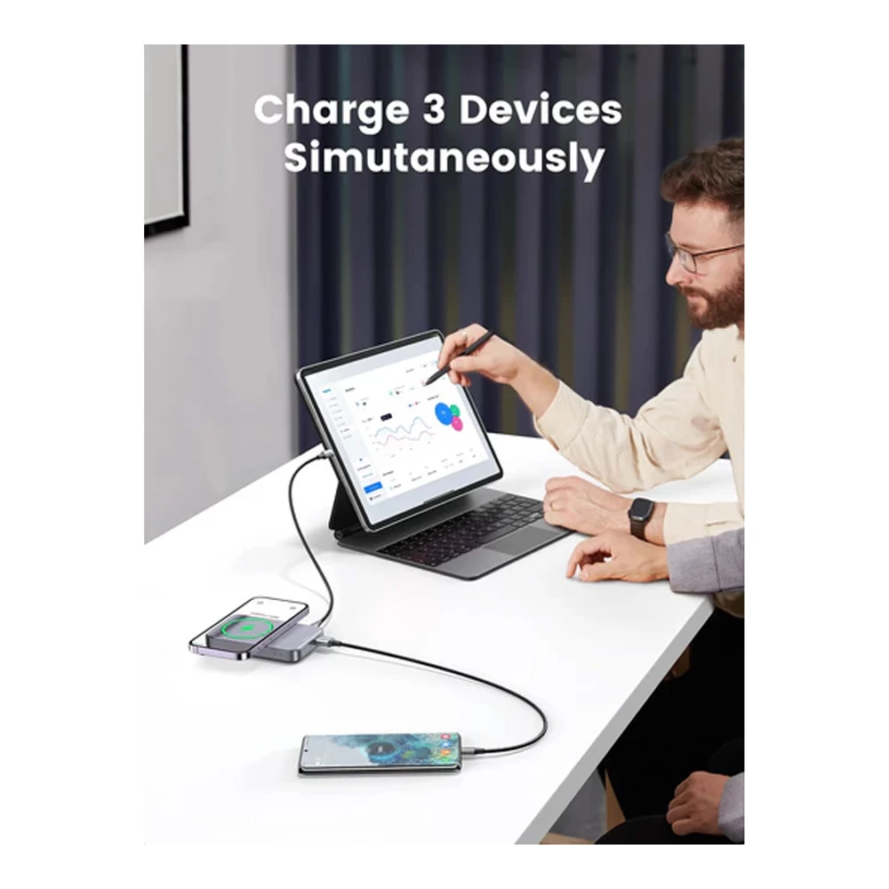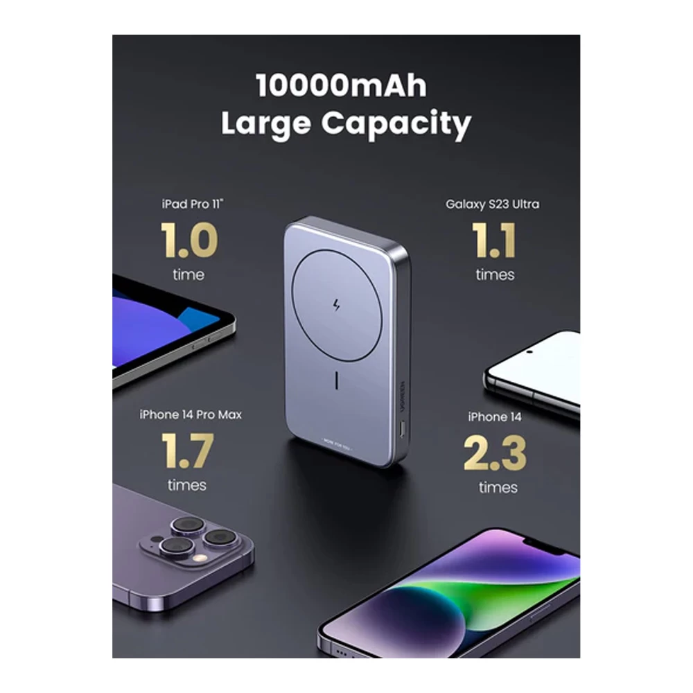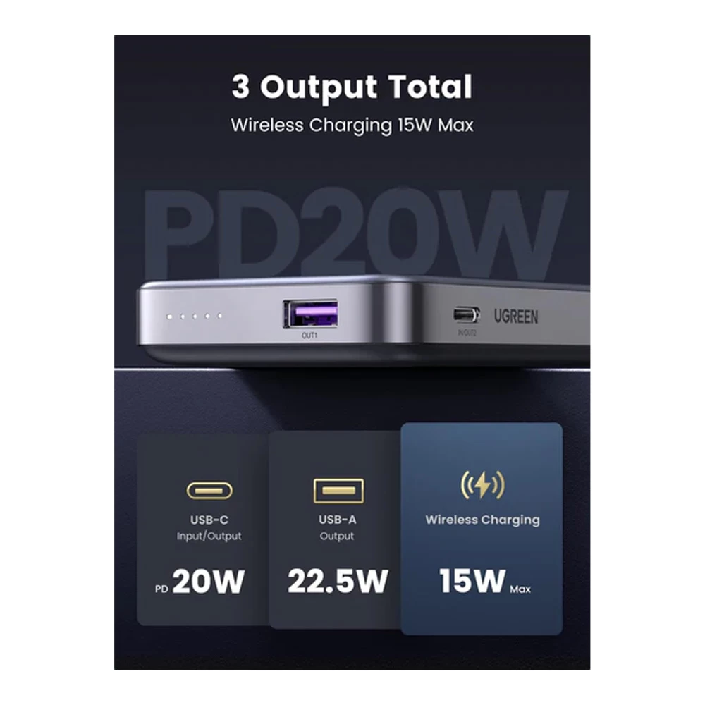 Внешний аккумулятор Ugreen 10 10000mAh 20W Foldable Kickstand Magnetic Wireless Space Gray