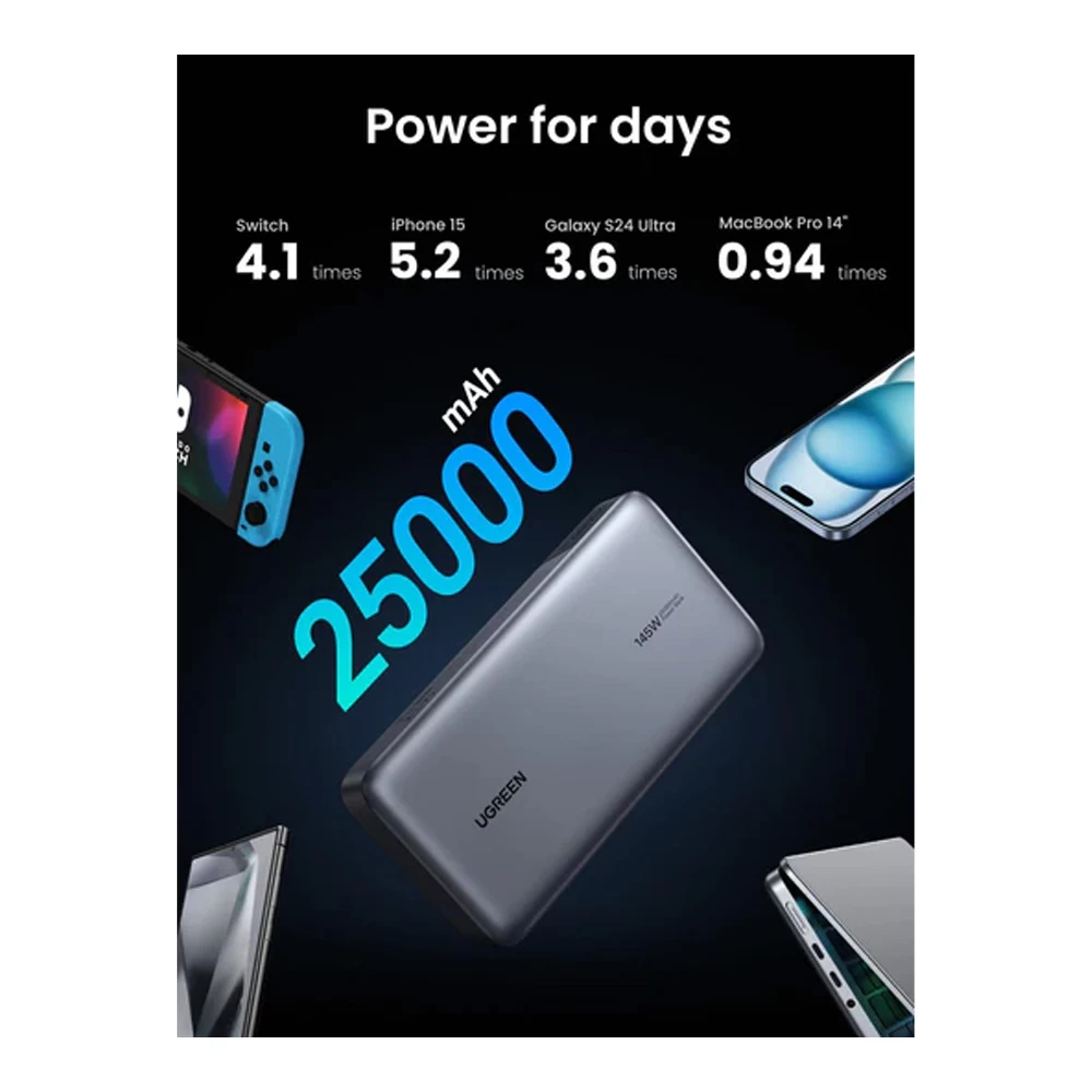 Внешний аккумулятор Ugreen 25 25000mAh 145W Two-way Fast Charging Grey