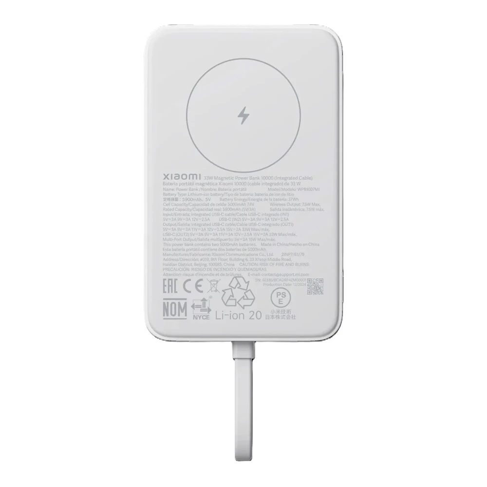 Внешний аккумулятор Xiaomi 33W Magnetic Power Bank10000mAh (Integrated Cable) White (62336)