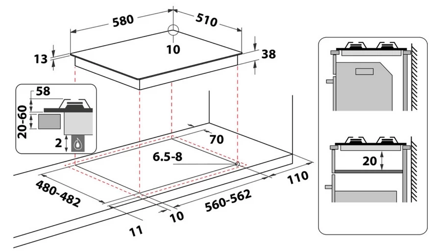 Встраиваемая газовая панель Whirlpool TKRL660IX