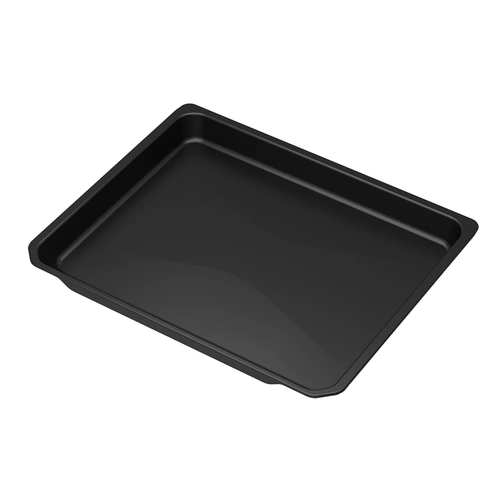 Фасад выполнен из стекла и смотрится лаконично в черной кухне. Дверца откидная, со стеклом в 2 слоя — это про комфорт в использовании и более уверенное удержание тепла. Внутреннее покрытие — эмаль: поверхность проще поддерживать в порядке после запекания и соусов.