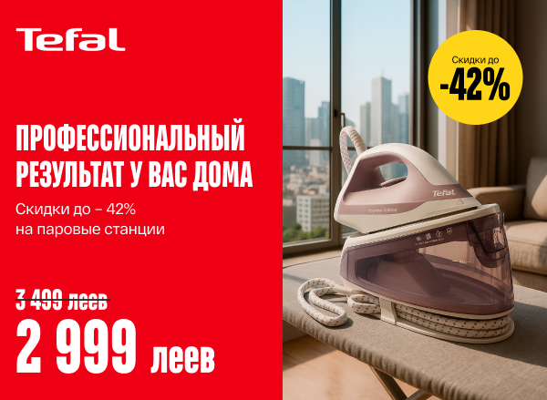 Гарантированный подарок при покупке единицы товара Tefal, Moulinex, Rowenta, Krups от 1001 леев!