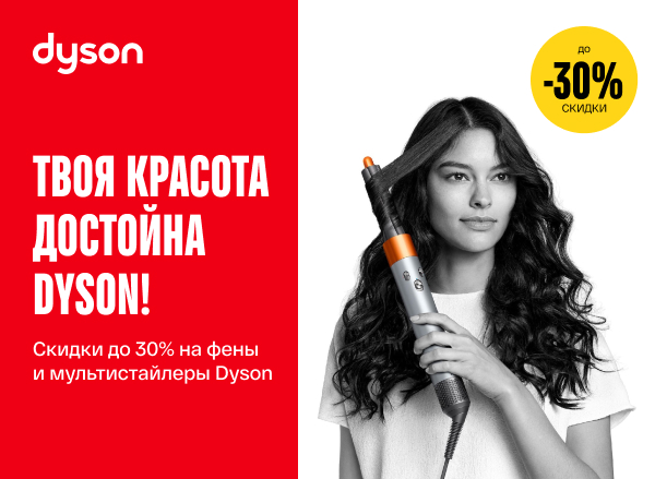 Скидки до -30% на фены, выпрямители и мультистайлеры Dyson