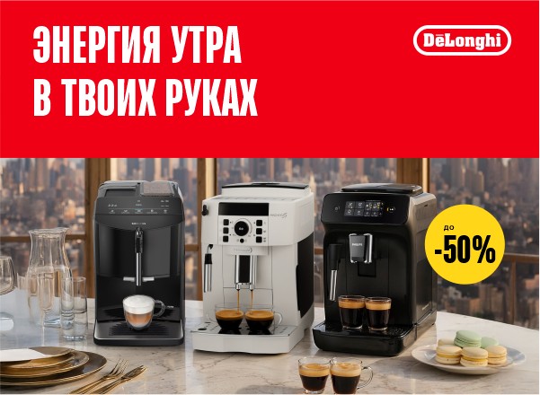 Твоё идеальное утро начинается здесь. Скидки до -50% на кофемашины