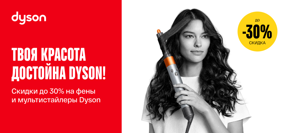 Скидки до -30% на фены, выпрямители и мультистайлеры Dyson